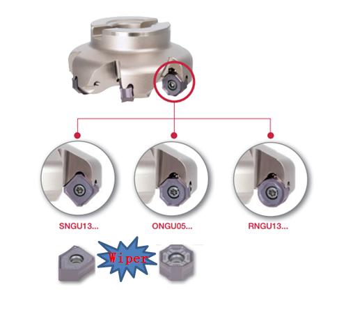 一款铣刀针对不同加工条件可安装 八角形、四角形、圆形刀片!同时八角形、四角形刀片还具备相应的修光刃刀片使加工表面更加完美!